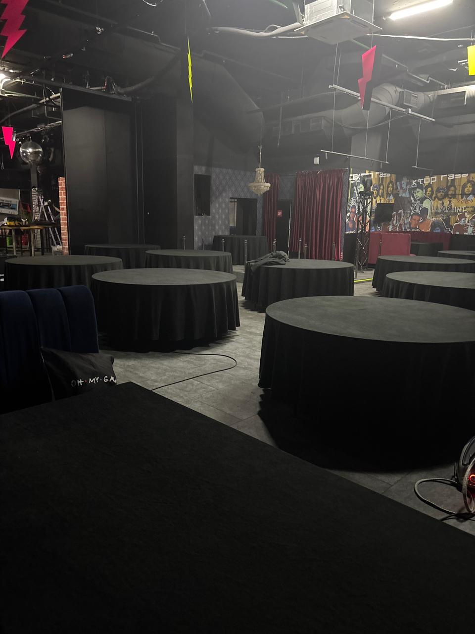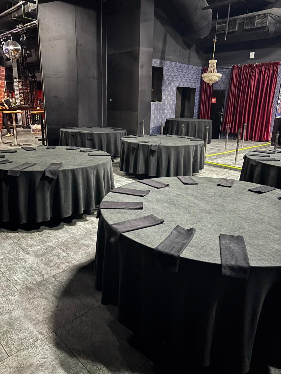 Чёрные круглые скатерти из премиального материала софт для мероприятий: аренда с максимальным комфортом