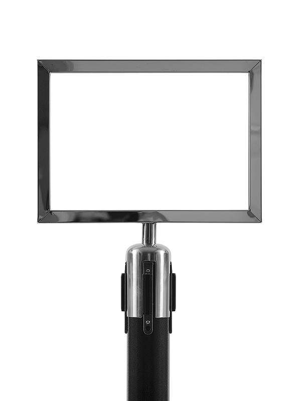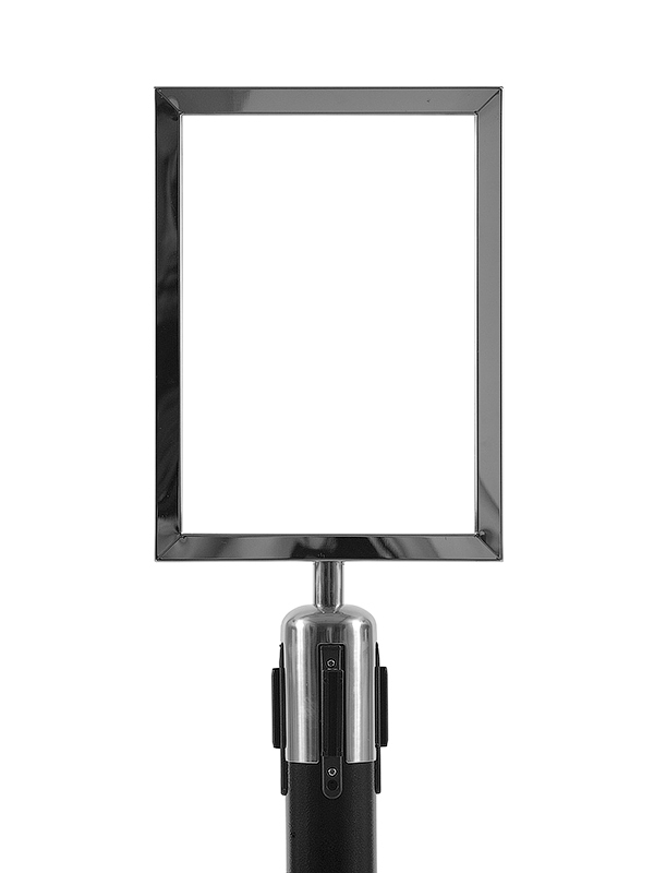 Эти рамки надеты на стойки-ограждения с вытяжной лентой - и когда надета рамка, можно пользоваться вытяжной лентой без ограничений. Это устойчивые информационные стойки, которые не боятся порывов ветра.